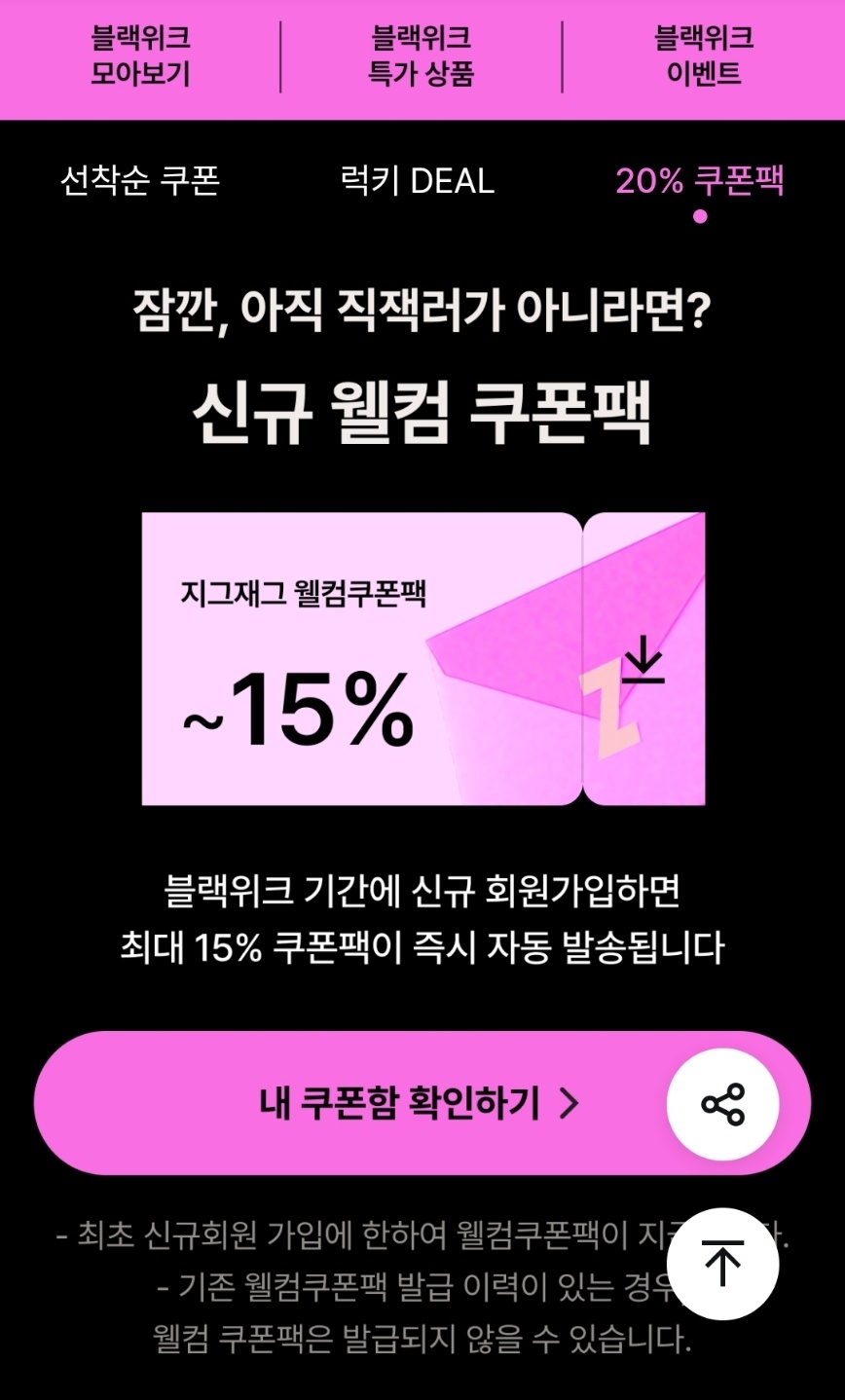 지그재그 블랙위크 쿠폰 받는 법